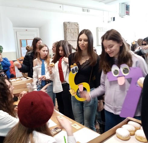 Izradom velike maske, radi stvaranja ugođaja za izbor najbolje pokladne maske u Školi (17.2.2025.), upotpunile su Lena Višnjić (1.c) i Sofija Buljan (1.d) veseli plakat .