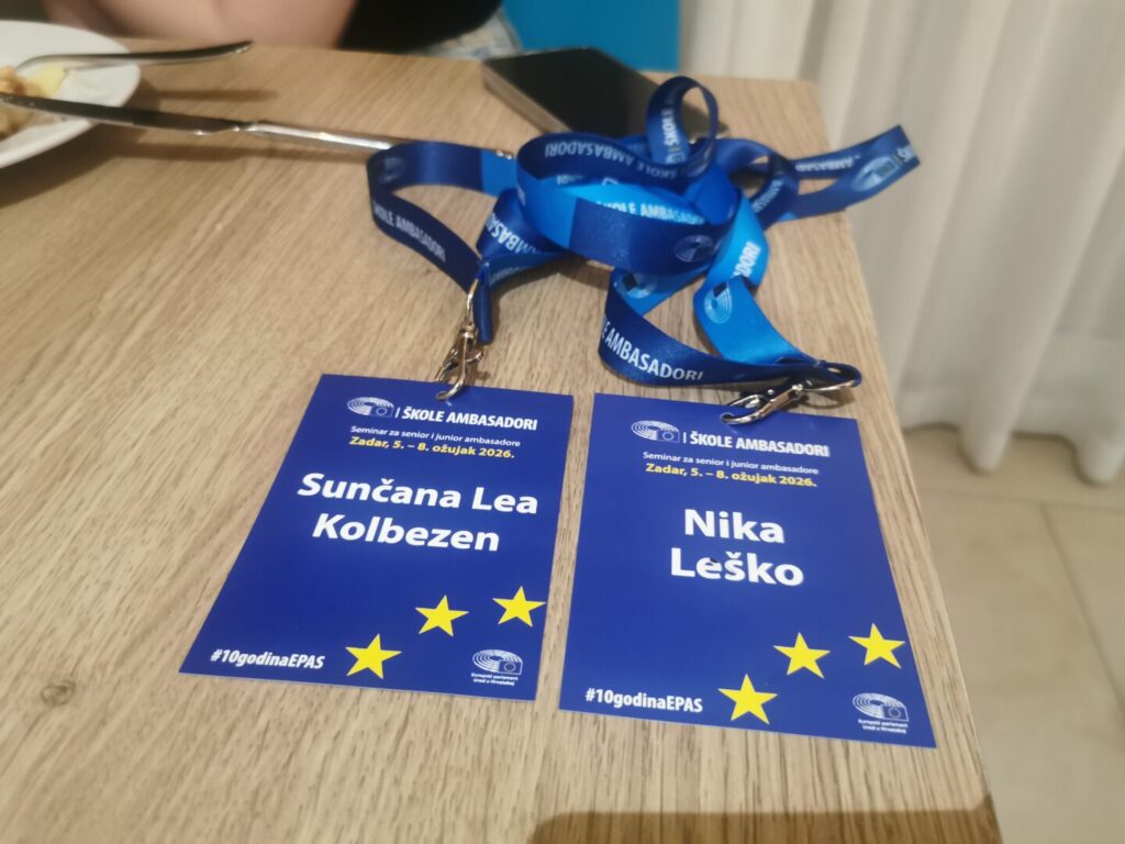 „Seminar u Zadru nadmašio je sva moja očekivanja. Očekivala sam naporne i dosadne prezentacije, ali sam se ugodno iznenadila zanimljivim prezentacijama, raspravama i aktivnostima koje su nas uključivale u rad. Prijateljstva koja sam stekla ostat će još dugo, a iskustva će mi biti vrlo korisna za daljnji rad. Veoma sam zahvalna što mi se pružila ovakva prilika te ću se sada potruditi podijeliti sva ova nova znanja koja sam stekla. Spremna sam educirati ostale učenike te učiniti našu školu još boljim mjestom za sve. Zahvaljujem se svima koji su u ova četiri dana izdvojili svoje vrijeme, znanje i trud te vjerujem kako ćemo nakon ovoga mi mladi učiniti EU boljim mjestom.“ Nika Leško, 1.E, EPAS ambasadorica
