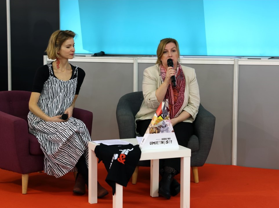 Osvrt na realizaciju projekta koji je osmislila i provela, kao i na suradnju s partnerima dala je Maja Marović, prof. likovne umjetnosti, a o društvenoj igri i njenom kreativnom konceptu govorila je Iva Novak, viša kustosica pedagoginja i voditeljica Pedagoškog odjela MUO.