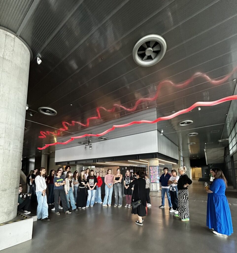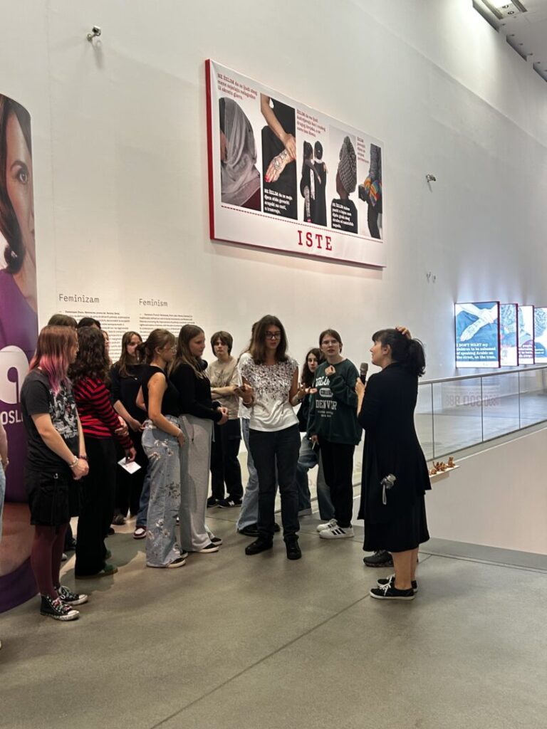 Mnogobrojna Likovna grupa profesorice Marović posjetila je Muzej suvremene umjetnosti u Zagrebu. Izložbom Andreje Kulunčić “Činiti svijet boljim mjestom” grupu je provela kustosica Filčić, na jedan vrlo interaktivni i zanimljivi način.