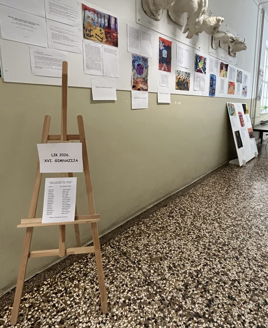 Na izložbi su postavljeni likovni radovi školske razine natjecanja („Natjecanje-izložba učenika osnovnih i srednjih škola Grada Zagreba iz područja vizualnih umjetnosti i dizajna LIK 2026.“).