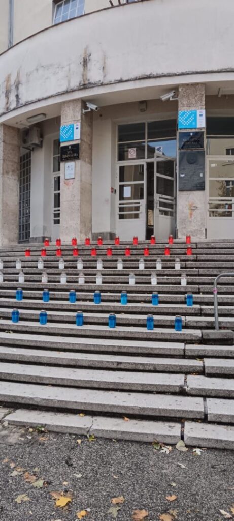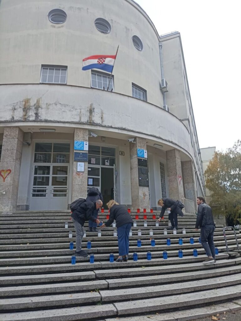 Profesori i učenici XVI. gimnazije pogledali su u Cinestaru film “Kralj Tomislav”, a poslije su ispred škole zapalili svijeće u spomen na žrtvu Vukovara i Ṣ̌kabrnje.”