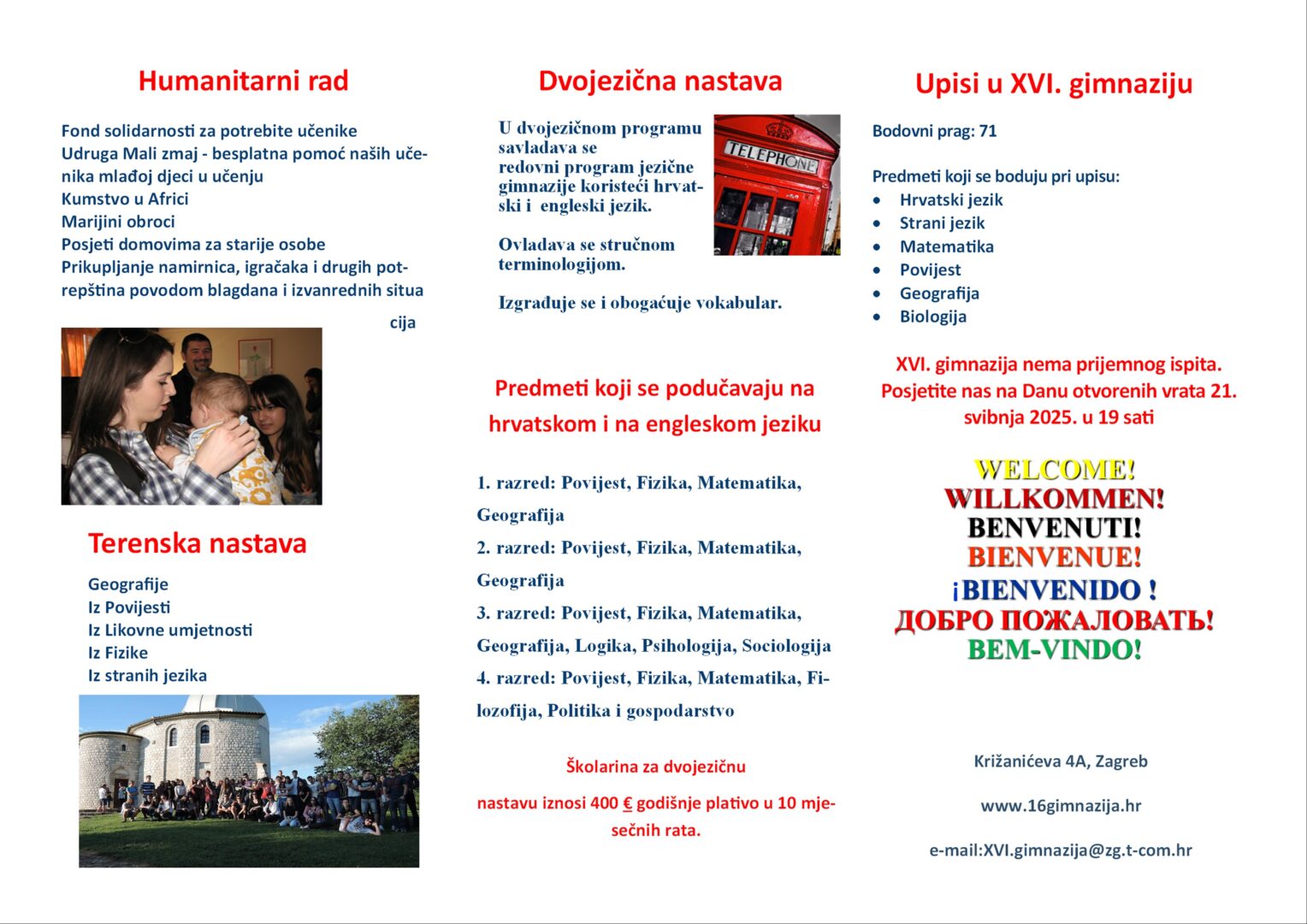 Informacije za prijavu i upis učenika u 1. razred XVI. gimnazije u školskoj godini 2025./2026.