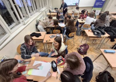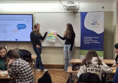 Magdalena Makar i Ksenija Vorberger predstavile su rad udruge, a potom su objasnile koncepte poput održivih gradova, pametnih gradova i održive mobilnosti. S učenicima su razgovarale o prometnom planiranju, štednji energije, stvaranju pješačkih zona te navele primjere dobre prakse.
